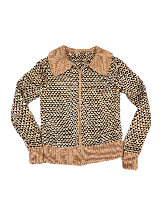 HAND-KNIT ACRYLIC ZIP CARDIGAN